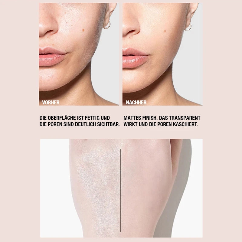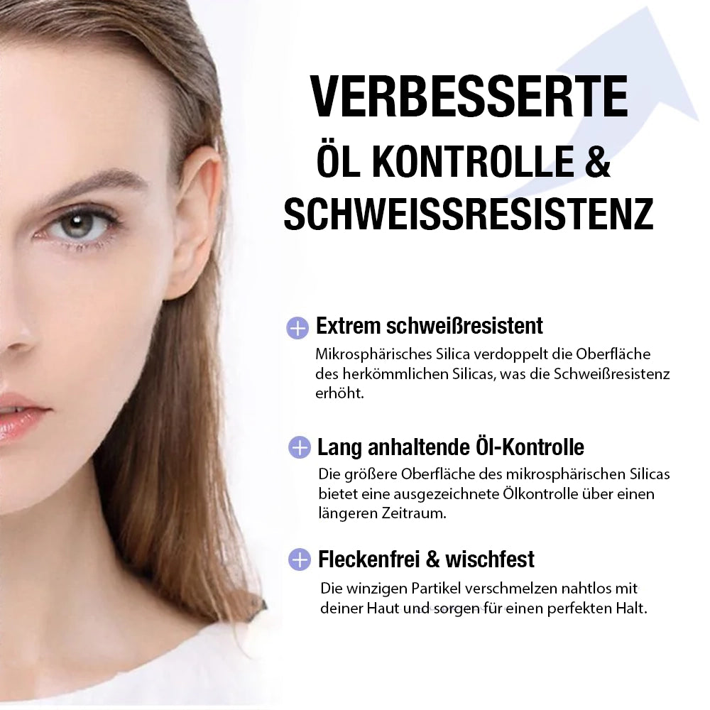 Keine Sorge mehr vor fettigen Stellen oder verschmiertem Make-up. Die Schweißbeständigkeit und die große Oberfläche der Silica-Partikel sorgen für eine außergewöhnliche Ölregulierung, die selbst bei Hitze oder Aktivität stundenlang hält.